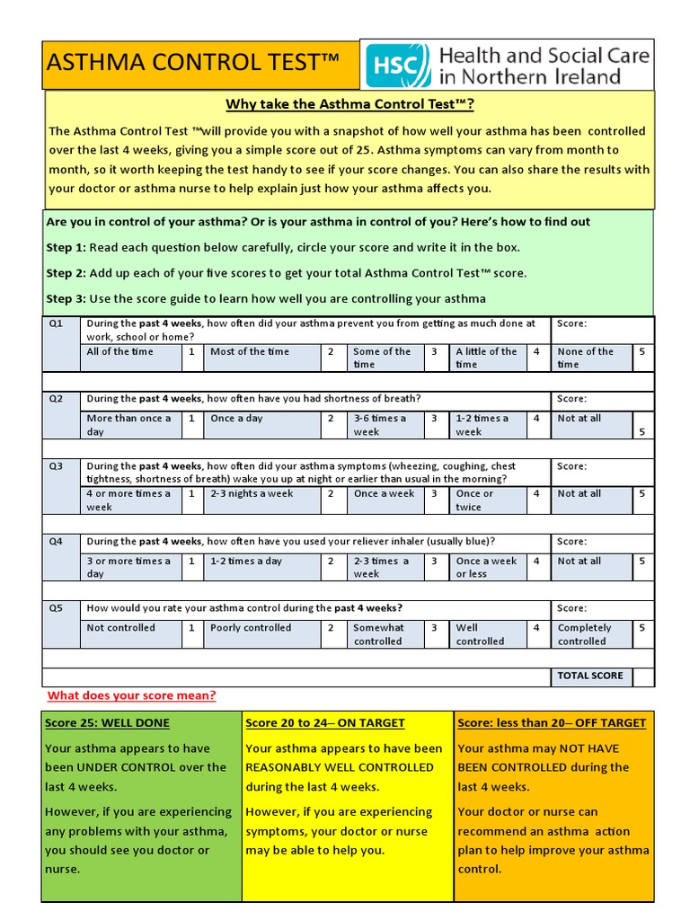 Your GP or asthma nurse may use a set of standard questions to. Read each question below carefully circle your score and write.